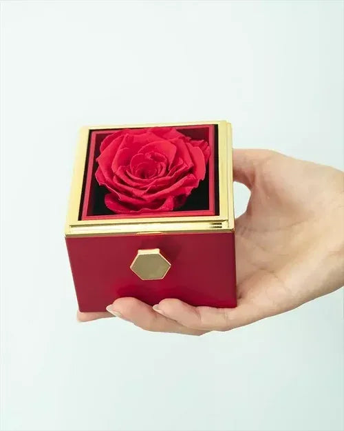 Ogni ordine viene preparato con cura: la rosa vera viene stabilizzata e rifinita a mano, mentre il gioiello viene inciso con precisione per rendere il tuo regalo davvero unico.